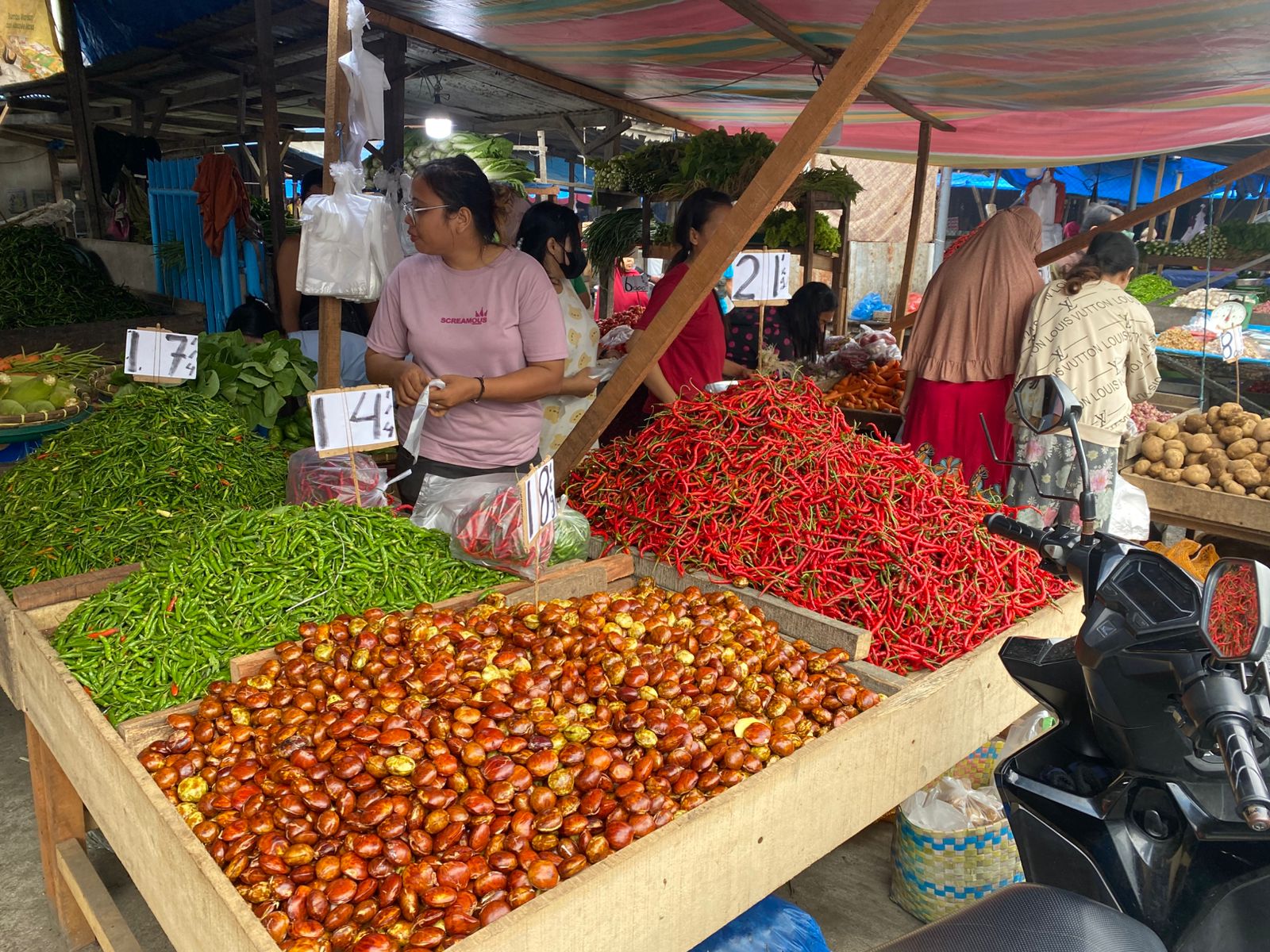 “Menyusul kemudian harga cabai hijau ditransaksikan dikisaran 21 ribu per Kg, dari posisi 23 ribu per Kg sebelumnya. Selanjutnya bawang merah turun dari kisaran 38 ribu per Kg, menjadi 28 hingga 31 ribu per Kg,” jelasnya.