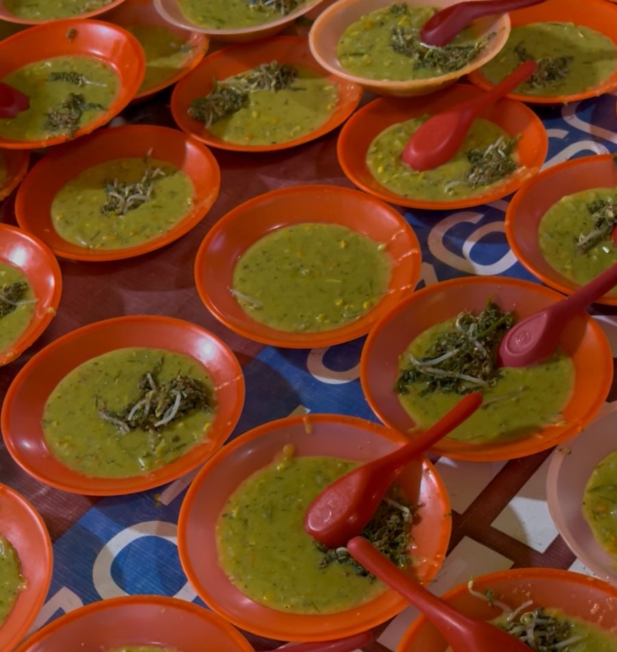 Bubur pedas yang disajikan merupakan kuliner tradisional Melayu yang kaya rempah dan sayuran, menjadi hidangan favorit masyarakat saat berbuka puasa.