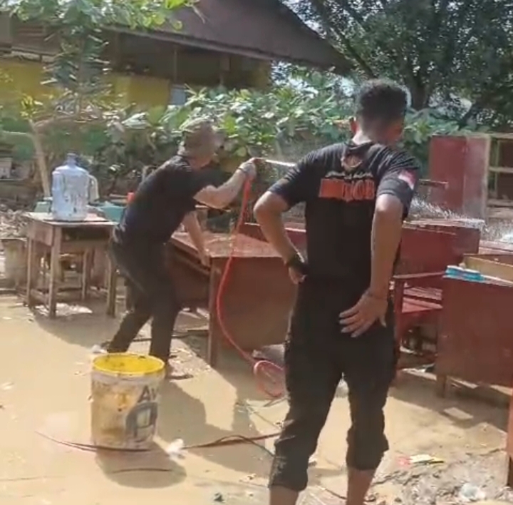 Dalam video yang diterima LangkatTerkini.com, Rabu (10/12/2025), terlihat para personel Brimob bekerja dengan semangat tanpa kenal lelah membersihkan ruang-ruang kelas menggunakan truk tangki air.