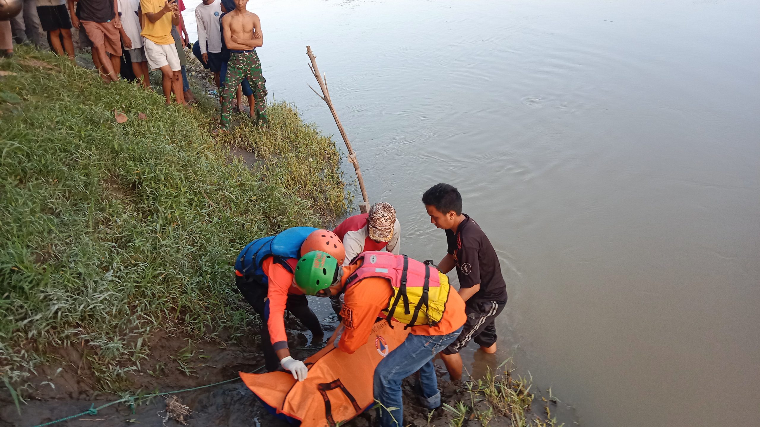 Jasad korban pertama kali ditemukan oleh seorang warga bernama Sahduddin (57) yang sedang memancing di sekitar yang tak jauh dari lokasi. Melihat adanya mayat mengapung, warga kemudian menarik tubuh korban ke tepi sungai menggunakan kayu dan mengikatnya sementara agar tidak hanyut terbawa arus.