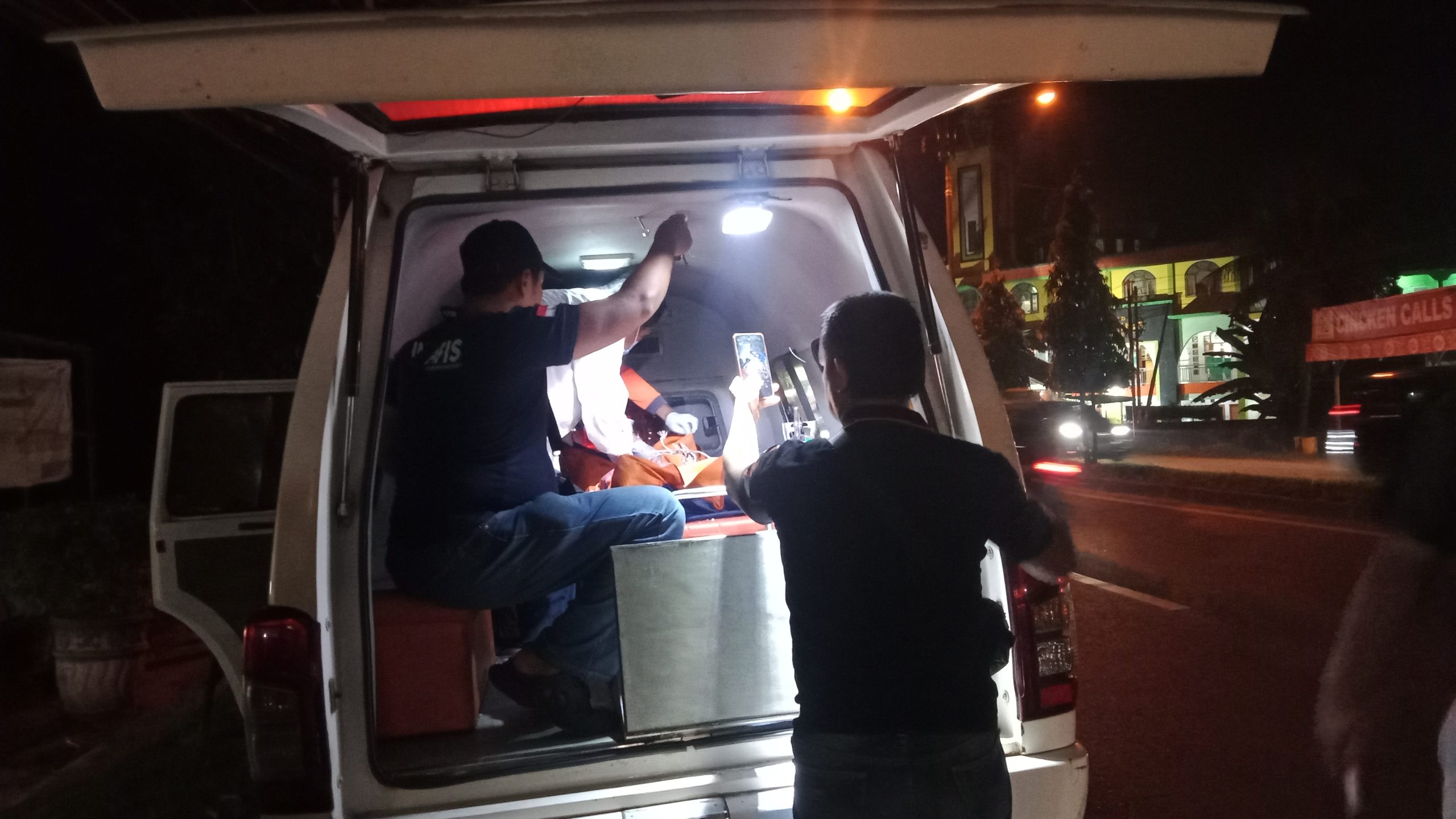 Tim Dokter dari Puskesmas Stabat melihat korban disaksikan BPBD dan Inafis Polres Langkat di Mapolsek Stabat (Foto : LangkatTerkini.Com)